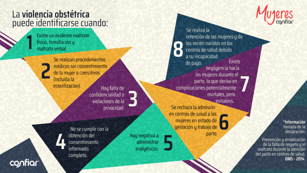 Que una mujer embarazada no sea tratada con respeto, que no haya calidad humana en la atención médica, que desconozcan su capacidad de decisión y autonomía sobre su cuerpo, que no la informen, que no le pidan consentimiento sobre los procedimientos o que no la atiendan a tiempo, son situaciones que se consideran violencia obstétrica V.O. Para identificarla, es vital la inclusión de las mujeres como sujetos de derecho en el sistema de salud, donde además de una atención digna reciban la información clara y precisa sobre los procesos y el acompañamiento que reciben. En un momento en el que la mujer es vulnerable, y con ella la vida de otro ser humano, la atención se percibe de manera positiva si, por ejemplo, el personal médico pregunta, informa y actúa bajo el consentimiento de la paciente.